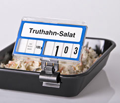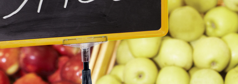 Dazu zählen alle Komponenten von Plakatrahmensystemen, Preiskassetten sowie Preisschildzubehör in Form von diversen Klammern- und Haltern für den Einsatz in (Frische)Theken und Obst- und Gemüsebereichen.